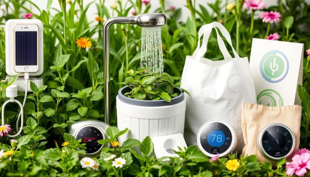 Energy-saving devices and eco-friendly tools are key. They help reduce energy and water use. These gadgets support a greener lifestyle.