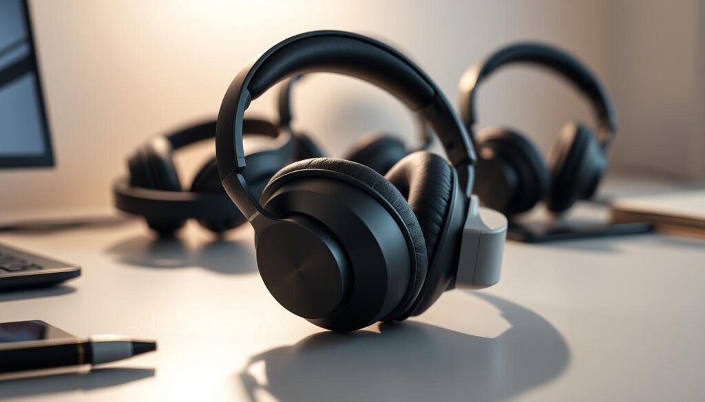 The Sony WH-1000XM4 is a top choice for noise-canceling headphones. It uses advanced technology with multiple microphones. These headphones are designed to block out background noise.